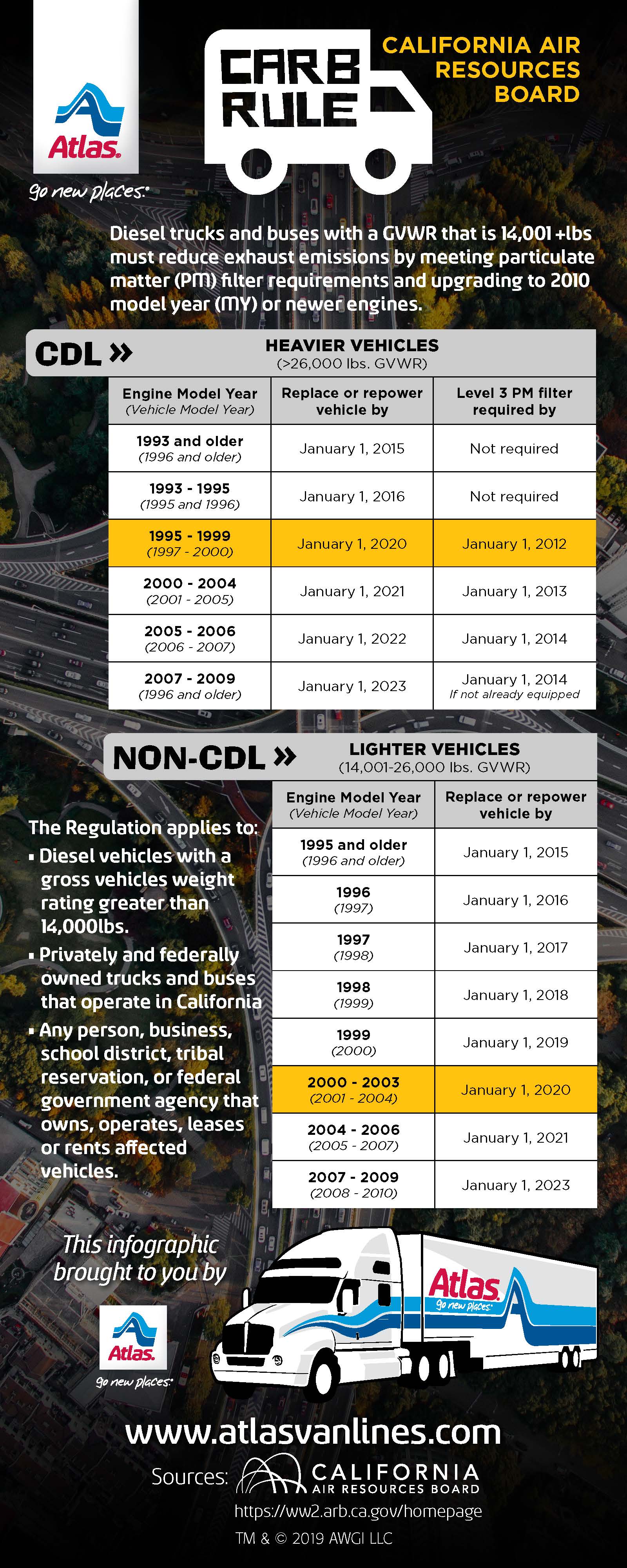 - For heavier vehicles over 26,000 pounds GVWR, those from 1995-1999 needed to comply by January 1, 2020, while engines from 2000-2004 have until January 1, 2021.