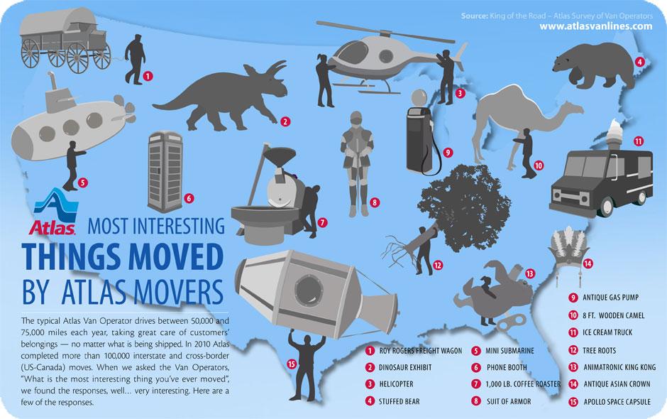 Movers encounter strange, unique, and valuable items every day and Atlas Van Lines is no exception. Some of the most interesting items relocated by Atlas movers include: